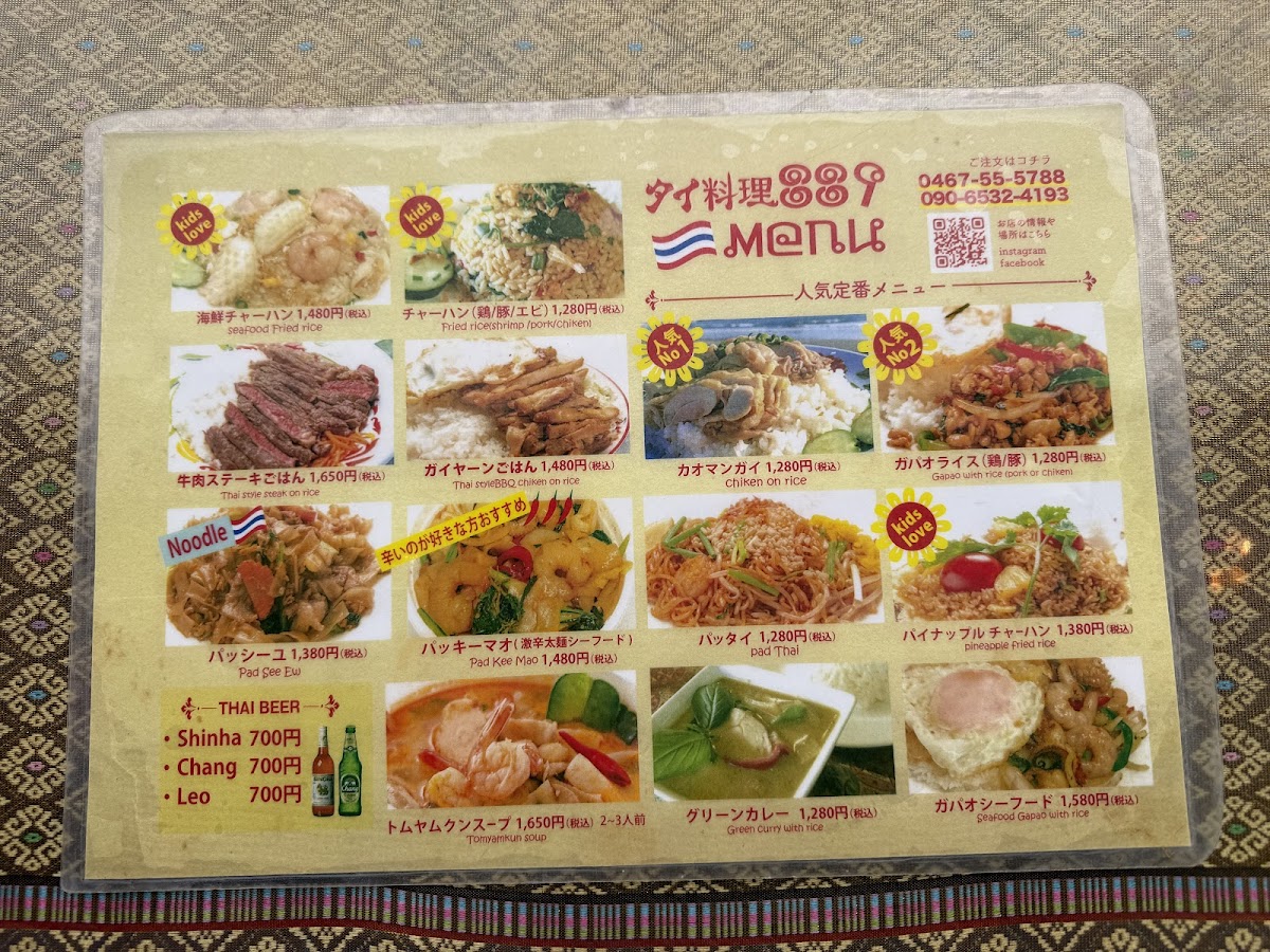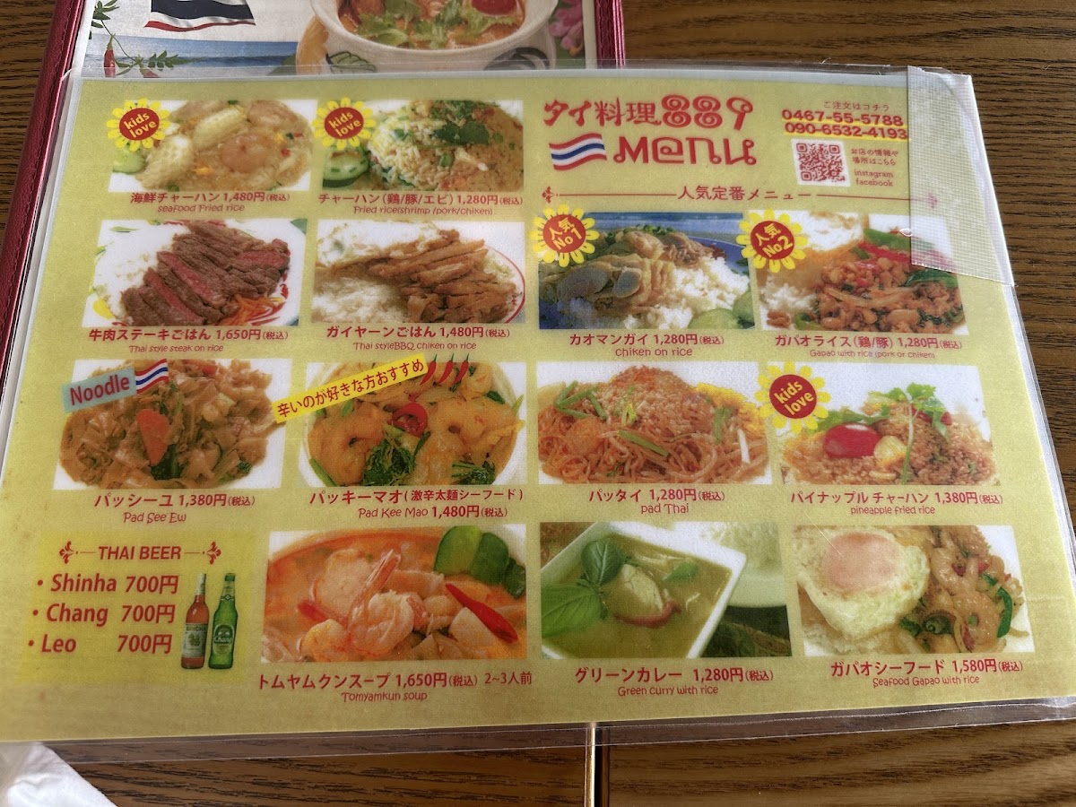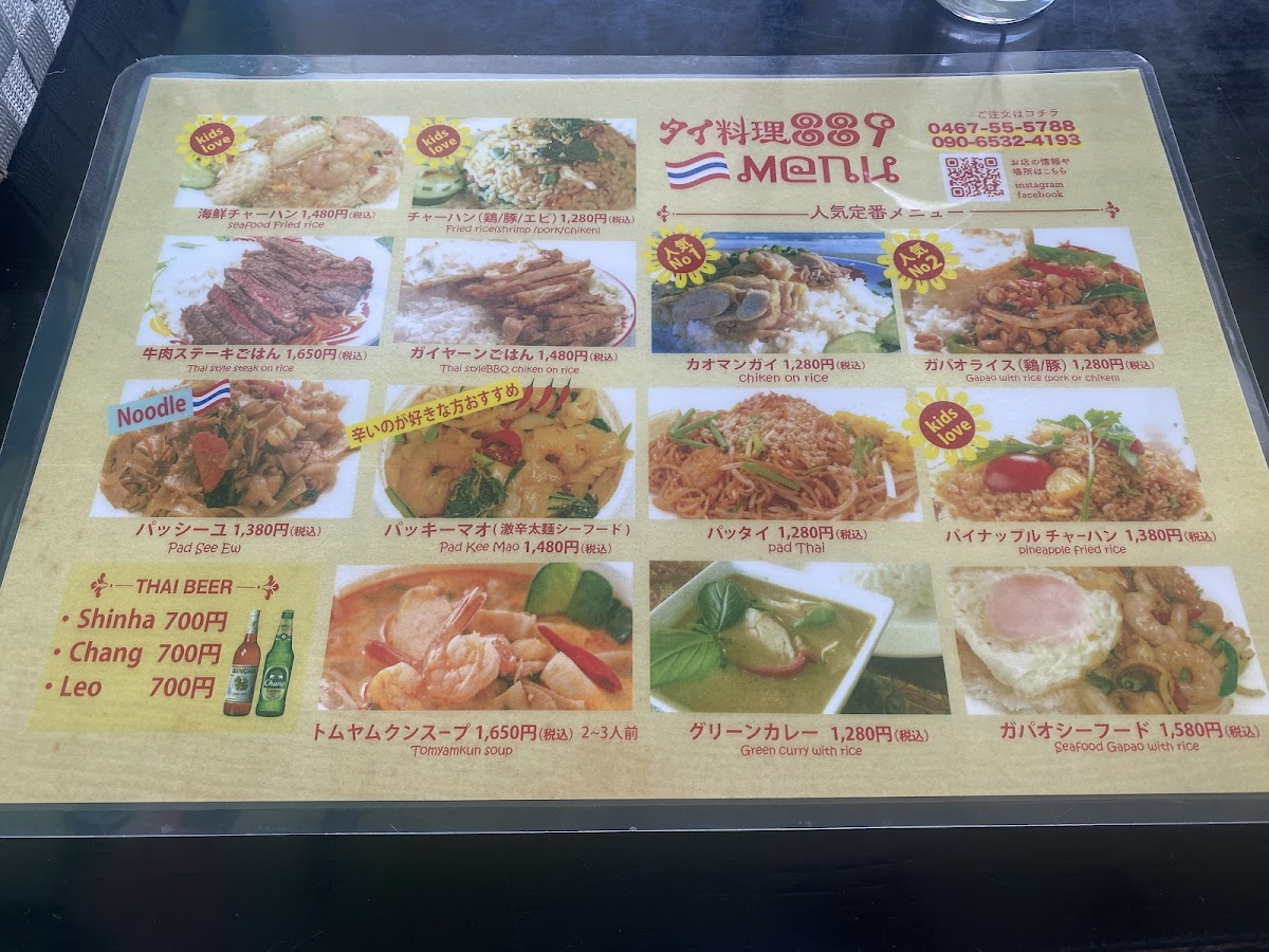 The menu at Thai Restaurant 889 offers an enticing array of traditional Thai dishes, each prepared with authenticity and a focus on fresh ingredients. Among the standout options is the Seafood Gapao with Rice, a flavorful stir-fry featuring a mix of seafood and aromatic Thai basil, served with a side of rice. For those seeking something hearty and comforting, the カオマンガイ (Khao Man Gai) is an excellent choice, offering tender chicken served with rice cooked in chicken broth, accompanied by a tangy dipping sauce.